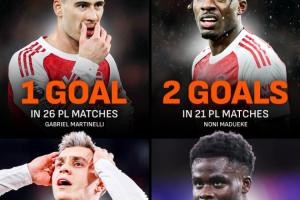总身价2.35亿!阿森纳四大边锋英超共进14球:萨卡6球马丁内利1球
